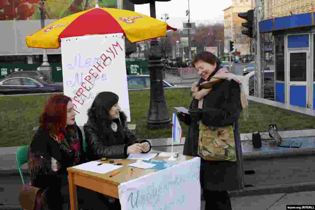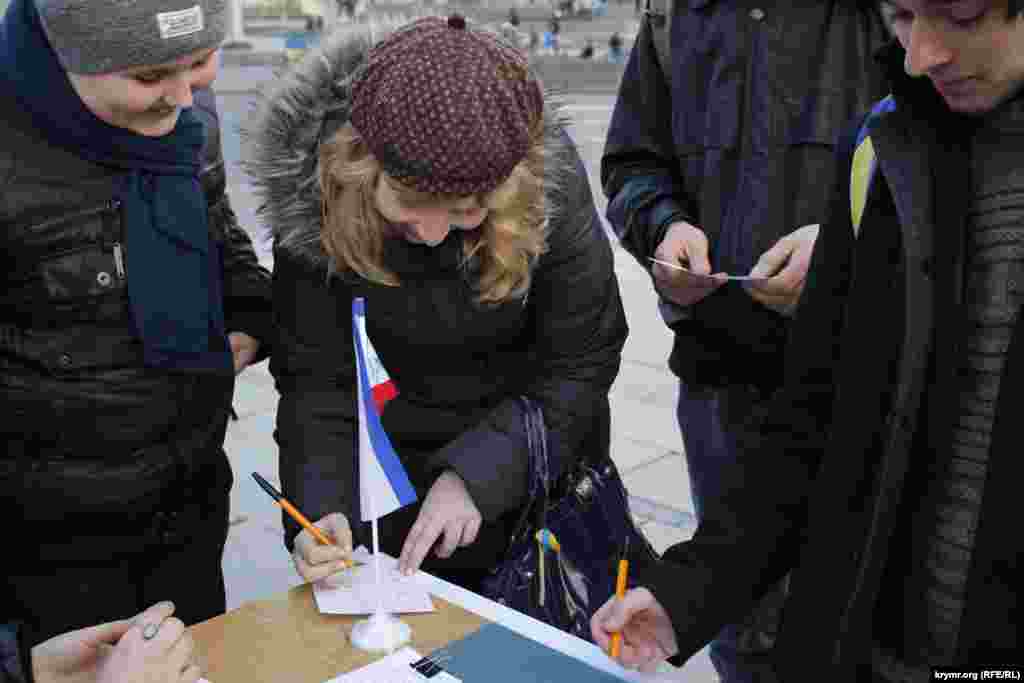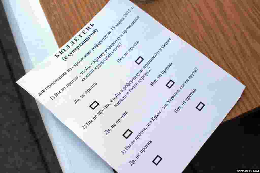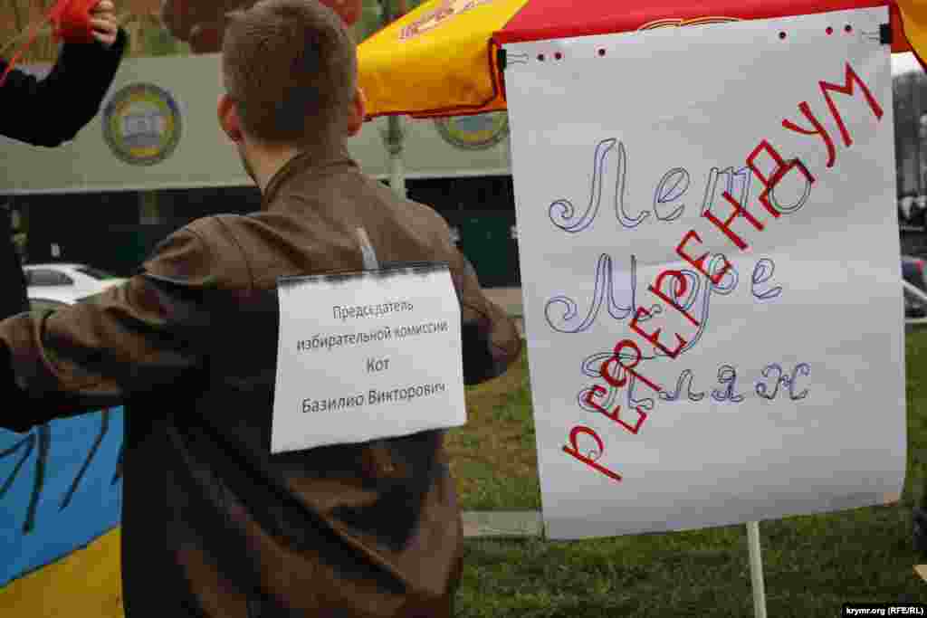 Таким образом, участники акции хотели показать абсурдность и неправомерность «референдума», который состоялся год назад в Крыму.