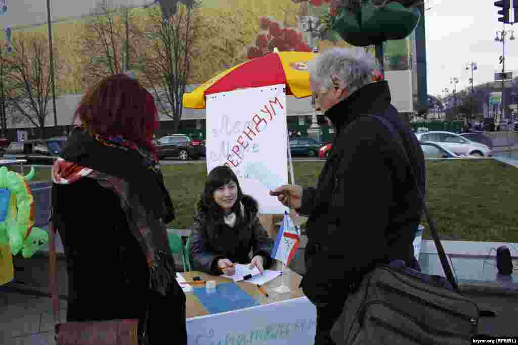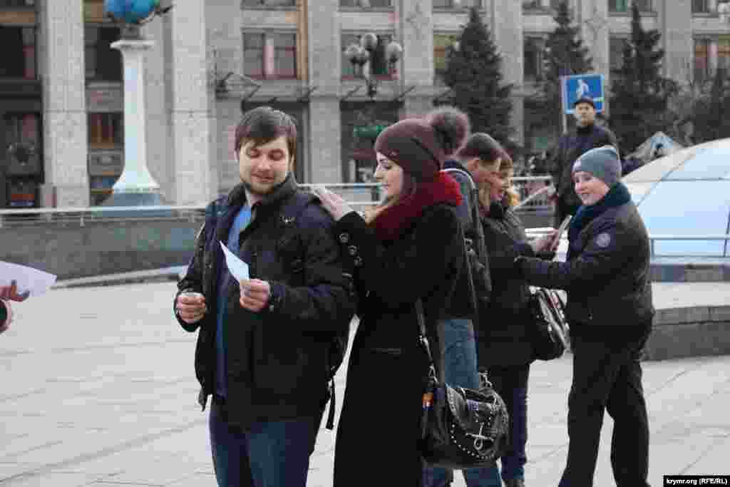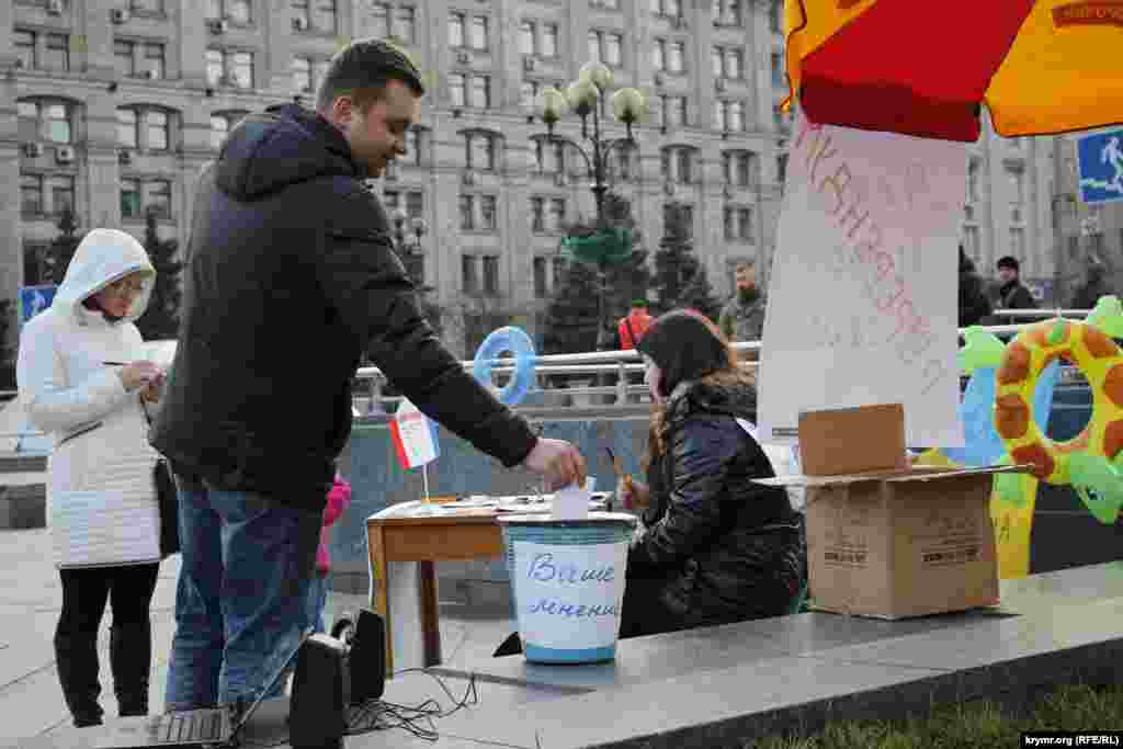 На Майдане Независимости показали, как походил референдум в Крыму год назад.