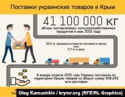 Если говорить о финансовой стороне вопроса, то, по данным Государственной службы статистики Украины, в январе-апреле 2015 года Украина поставила на территорию Крыма товаров на общую сумму 308,652 млн долларов, что на 296,109 млн долларов или в 25 раз больше объема поставки товаров из Крыма на материк. Примечательно, что за январь-февраль было поставлено товаров на 96,5 млн долларов. То есть динамика явно нарастающая, так как за вдвое больший промежуток времени товарный объем не удвоился, а утроился.