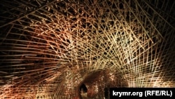 Молодые люди, переговариваясь на русском, заходят в тоннель, сконструированный из бамбуковых прутьев. Так выглядит вход на фестиваль электронной музыки Epizode – переименованный KaZантип. Среди посетителей, заходящих в бамбуковую арку, много парочек в ярких костюмах. По тоннелю вышагивает высокий бородатый парень в костюме розовой феи и держит за руку свою спутницу. На ней полупрозрачное платье, через которое просвечивается черный купальник-бикини и розовые рваные чулки.