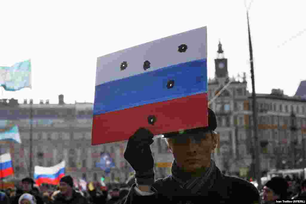 Под крымскотатарскими флагами: «Марш Бориса Немцова» в Москве (фотогалерея)