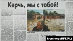 «Крымская правда» в статье «Керчь, мы с тобой!» рассказывает о последствиях небывалого наводнения в городе и прилегающих районах. «Вой собак на цепях во дворах, тонущие в стихийных реках животные, машины по крыши в воде. Так выглядит Керчь из-за сильных ливней», – отмечает газета. По информации издания, в Керчи в ночь с 16 на 17 июня выпало две месячных нормы осадков – 82 мм. В городе затоплено несколько улиц и более 230 частных и многоквартирных домов, горбольница №1. Автомобили затоплены по самые крыши, сдвинуть их с места невозможно. Залиты дворы и первые этажи частных домов. Кроме того, поплыли городские рынки. Прилавки залиты водой, огромное количество паллет и ёмкостей для хранений унесло водой. Испорчены продукты и не только.