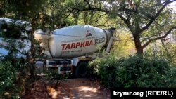 О том, что на территории бывшего военного санатория МО Украины в Ялте сейчас ведется строительство, свидетельствует строительная техника, которая перемещается по парковой зоне. Техника, в частности, принадлежит предприятию «Таврида Бетон».