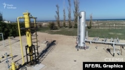 В 2014 году месторождение захватили россияне, но его удалось вернуть. Постоянный представитель президента Украины в АР Крым Борис Бабин говорит, что нормальную хозяйственную эксплуатацию месторождения восстановили в 2016 году.
