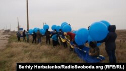 Волонтеры из Краматорска, Киева, Херсонской и Запорожской областей 4 декабря запустили в сторону Крыма флаг Украины размером 20 на 6 метров, сообщает корреспондент Крым.Реалии.