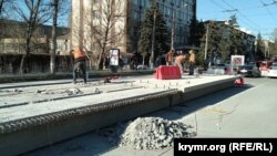 В Симферополе продолжаются работы по ремонту моста через реку Салгир на улице Гагарина.