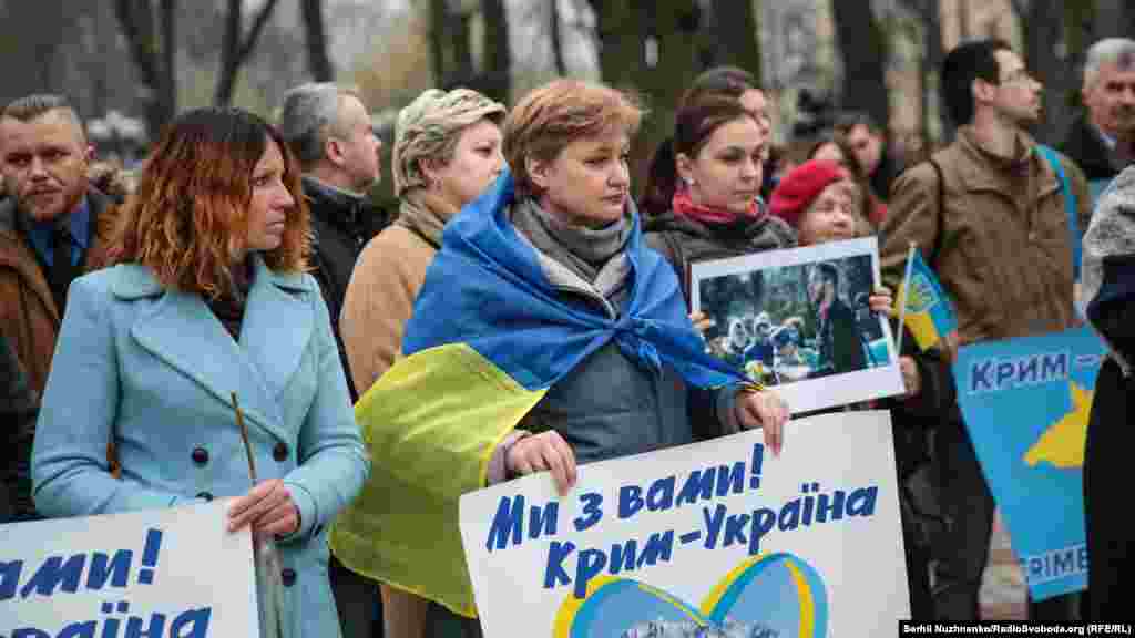 Собравшиеся пришли в парк имени Тараса Шевченко с украинскими и крымскотатарскими флагами, плакатами «Крым – это Украина» и фотографиями, на которых запечатлены кадры акций в поддержку территориальной целостности Украины в Крыму. Участники акции пели гимн Украины, а также обращались к жителям полуострова со словами поддержки.