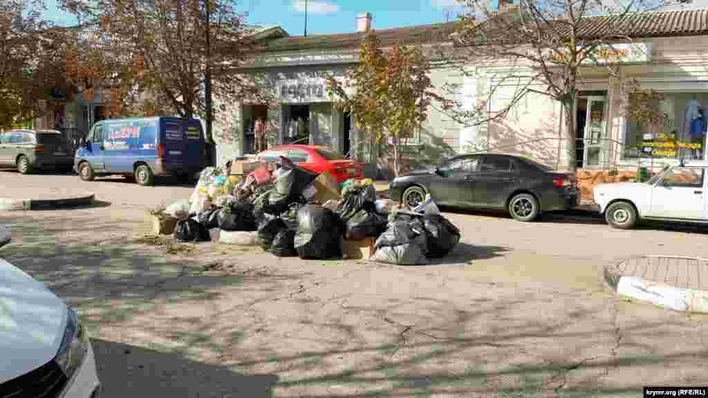 В центре Керчи местные жители складируют бытовые отходы прямо посреди улицы. Груды мусора лежат и на одной из центральных улиц города – улице Козлова, которая соединяет улицу Ленина и центральный рынок.