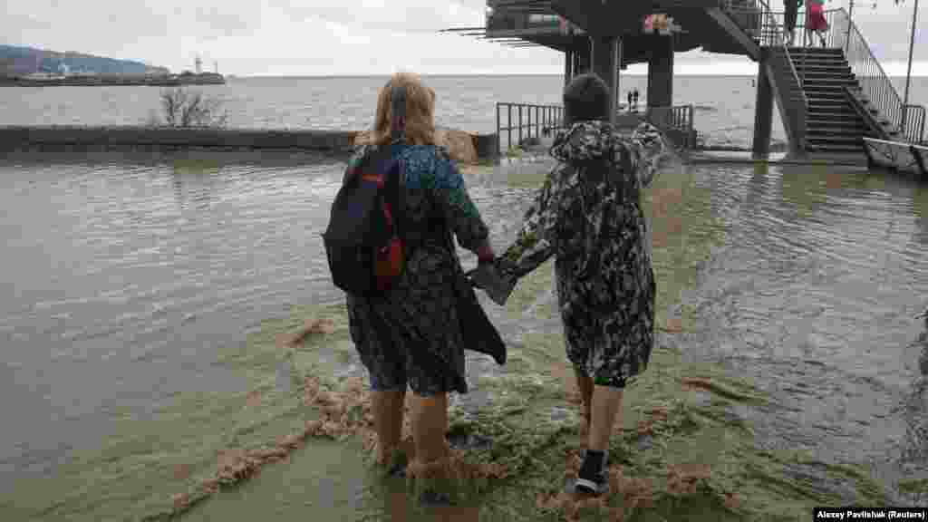 До этого, в ночь на четверг, в восточных районах Крыма выпало почти две месячные нормы осадков. В Керчи произошло наводнение. На полуострове ввели режим чрезвычайной ситуации.