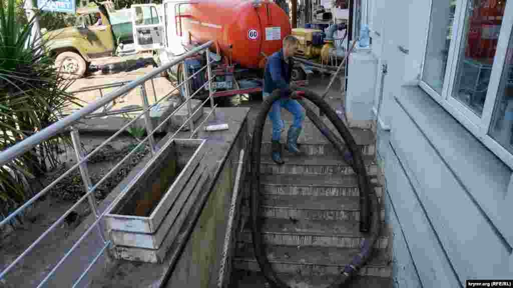 Жители курортной столицы Крыма продолжают устранять последствия небывалого наводнения. Где-то воду выкачивают насосами, а где-то – вычерпывают вручную.