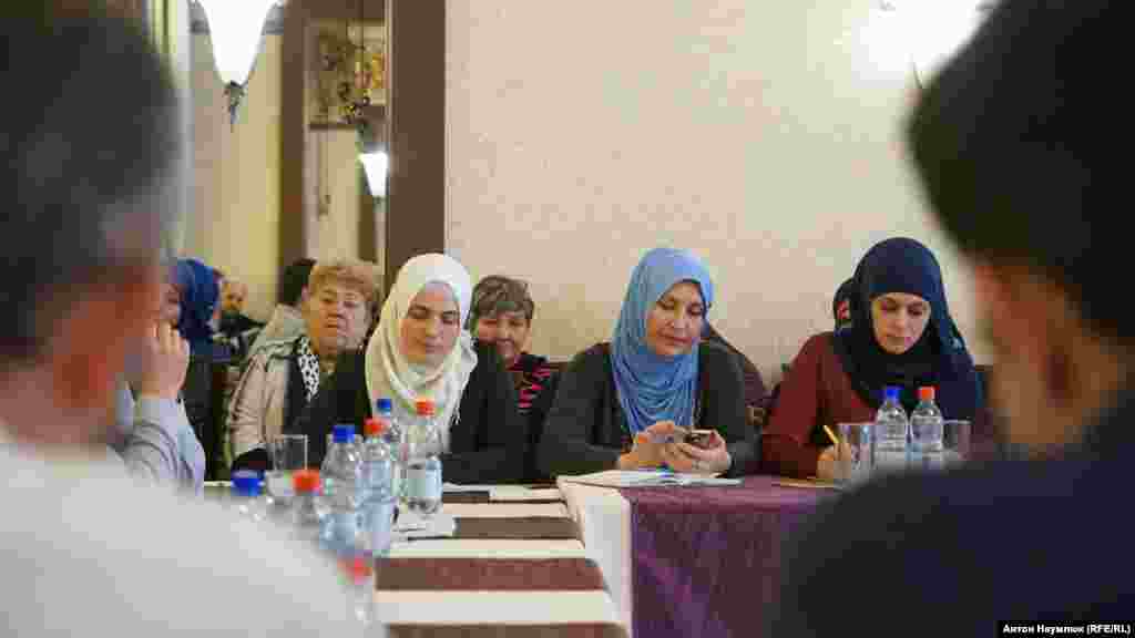 Участницы «Крымской солидарности» слушают рассказы жен «севастопольской четверки» фигурантов так называемого «дела Хизб ут-Тахрир».