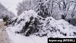 Можно сколь угодно стебаться над неожиданным приходом зимы, но в Керчи именно так и произошло. Снег, выпавший 6 января, устроил настоящий лесоповал на улицах и во дворах, создал преграды на дорожных магистралях и на подъездах к автобусным остановкам. Автомобили приходилось не только откапывать из-под снега, но и вызывать ГБДД в доказательство того, что машина пострадала от падения дерева, а не в ДТП. 7 и 8 января снег продолжать валить, превращая южный город в подобие северного.
