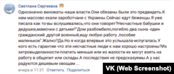 Пользователь с ником Светлана Сергеевна во всем винит российские власти, которые, по ее словам, впустили в город украинских беженцев – среди них, якобы, могут быть диверсанты.