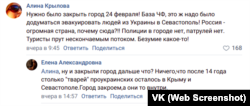 Алина Крылова сетует, что Севастополь не закрыли 24 февраля от беженцев с материковой Украины. Про «пятую колонну» украинцев в городе пишут другие участники группы в ответах на ее комментарий.