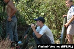 Дети играют с пустыми трубами от гранатометов.