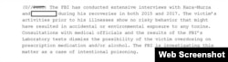 В новых документах есть заключение второго израильского врача, имя которого также вымарано, и Радио Свобода не удалось его установить на момент этой публикации. Согласно материалам дела ФБР, доктору "было сообщено, что у Кара-Мурзы есть ожоги пищевода, желудка и кишечника", но нет никаких следов внешних ожогов. Доктор заявил, что эти ожоги "вызваны не лекарством" и что "он не считает токсический эффект действием лекарственного препарата". Не вполне ясно, откуда второй доктор получил эту информацию. По данным дела, он не был допущен к осмотру Кара-Мурзы в московской больнице.