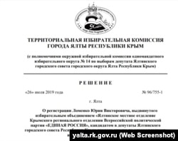 В конце октября Юрий Ломенко неожиданно подал заявление о сложении с себя полномочий депутата. По сообщению горсовета Ялты, 9 ноября депутаты удовлетворили его заявление. Глава горсовета Константин Шимановский поблагодарил его за «активную гражданскую позицию и стремление помогать своим избирателям».