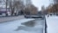 В последние несколько дней на полуострове наблюдалась холодная погода с отрицательной температурой воздуха. Этого хватило, чтобы поверхность реки Салгир в центре города покрылась слоем льда.